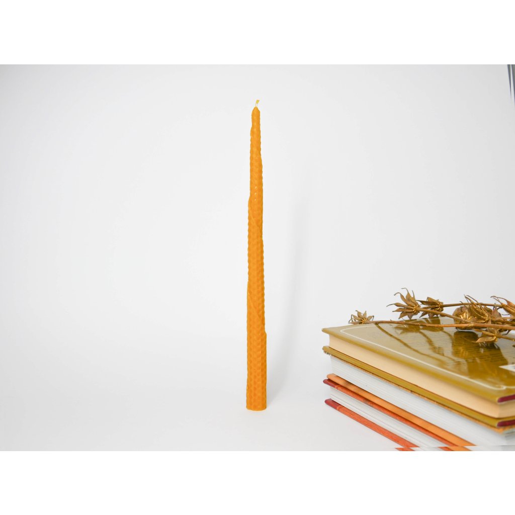 Tato svíčka byla vyrobena ručně z pravého včelího vosku, který je jediným, opravdu přírodním voskem. Včelí vosk totiž jako jediný tuk vhodný pro výrobu svíček vzniká přirozenou cestou, díky metabolickým procesům těla včely. Není potřeba žádné rafinace, extrakce ani žádné chemické cesty, jako u parafínu, sojového nebo palmového vosku.